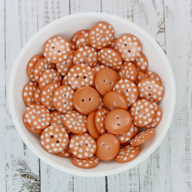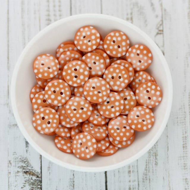 Orange Polka Dot Buttons, 2 hole round resin buttons