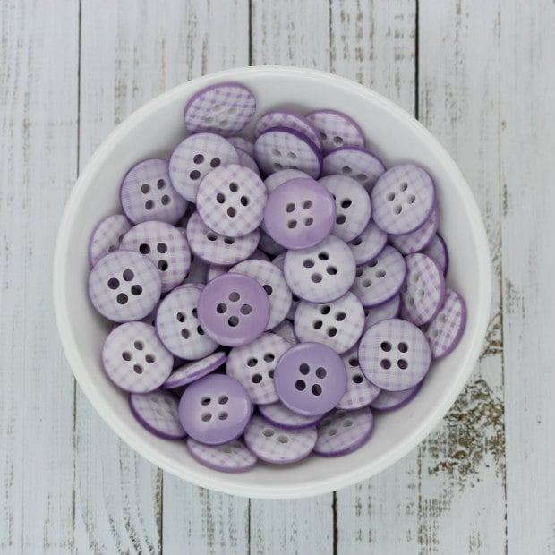 Lilac Gingham Buttons/Checked Buttons, 2 hole round resin buttons