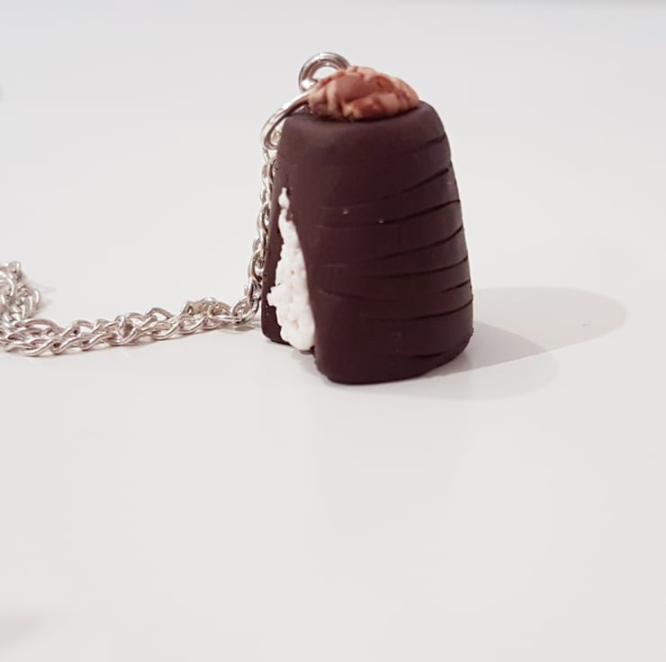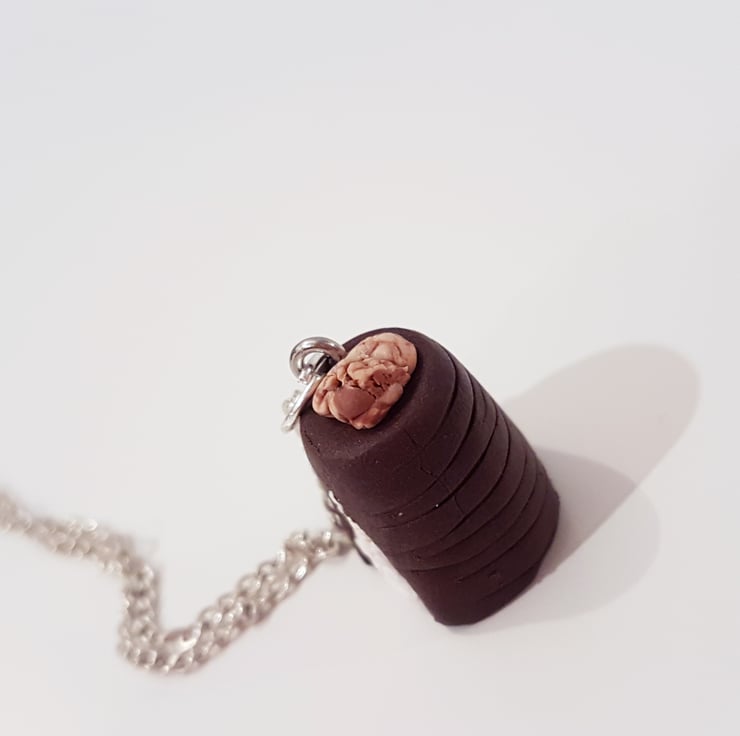 A very chocolatey Walnut whip charm, with a cut out to show the hand textured white mallow inside. Complete with the authentic lines around the chocolate and finished off with the classic walnut piece on top! Mmm delicious!