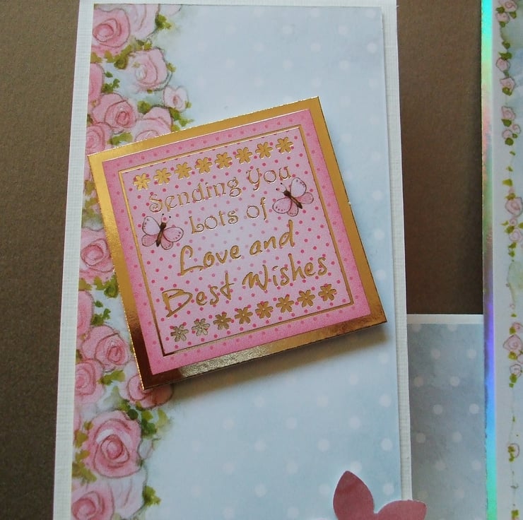 This card has a generic greeting "Sending You Lots of Love and Best Wishes" which makes it suitable for lots of occasions, Valentines, Engagements, Weddings and even New Home.