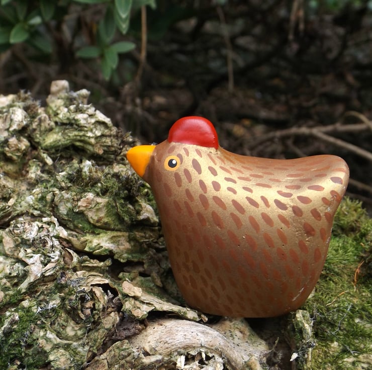 These figures are handmade. I design and sculpt each figure, then mould and cast by hand. The Rooster has been hand painted using high quality acrylics and given a coat of protective varnish.