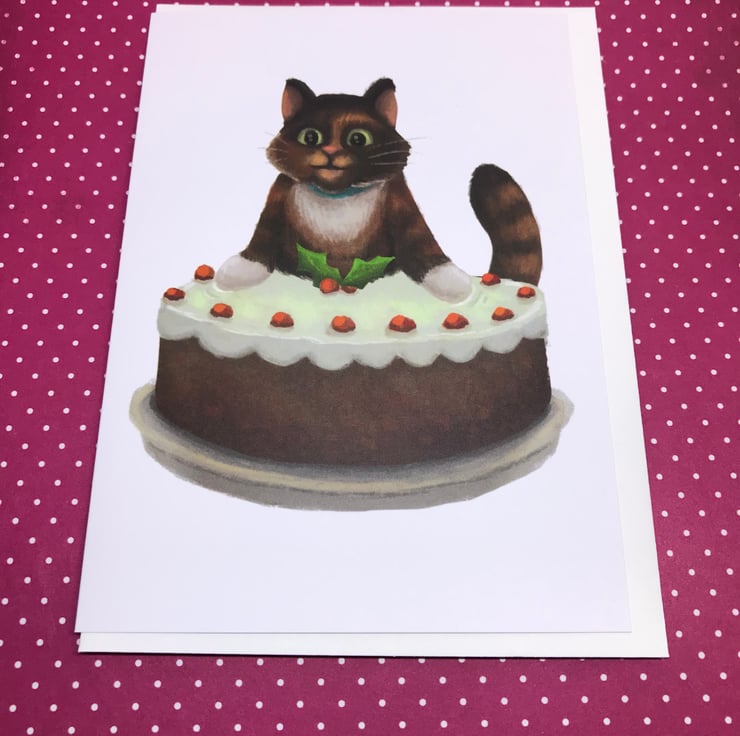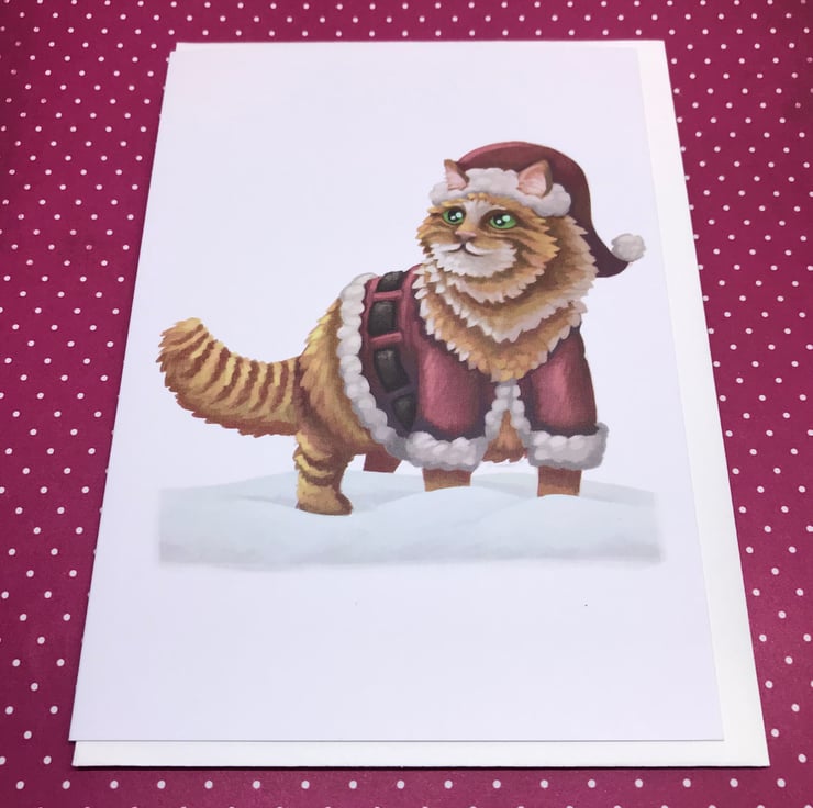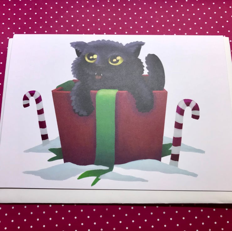 A festive set of 6 assorted Christmas cat cards. Cards are blank inside for your own message with white envelopes by DuffleCat Prints (Damian Case) 4.13" x 5.82" (105mm x 148mm) - landscape and portrait thick 340gsm card, sustainably sourced paper stock. With a light satin coating on the outside, the inside is left uncoated, making it easier for you to write your own message.