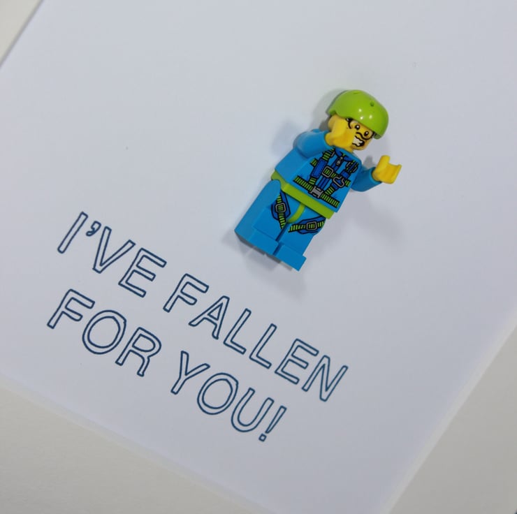 Our little Skydiver is a fabulously quirky and unique piece that would make an ideal Valentine's gift. We have mounted the little chap in a deep box frame, he comes complete with his helmet and wind blown face - he really will make you smile. Under the figure we have printed "I have fallen for you!" for a truly great Valentine's frame.