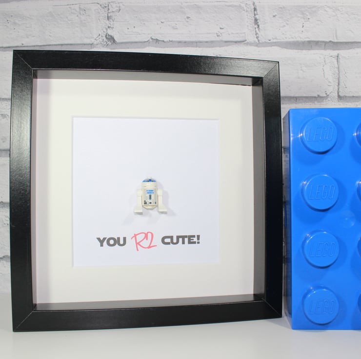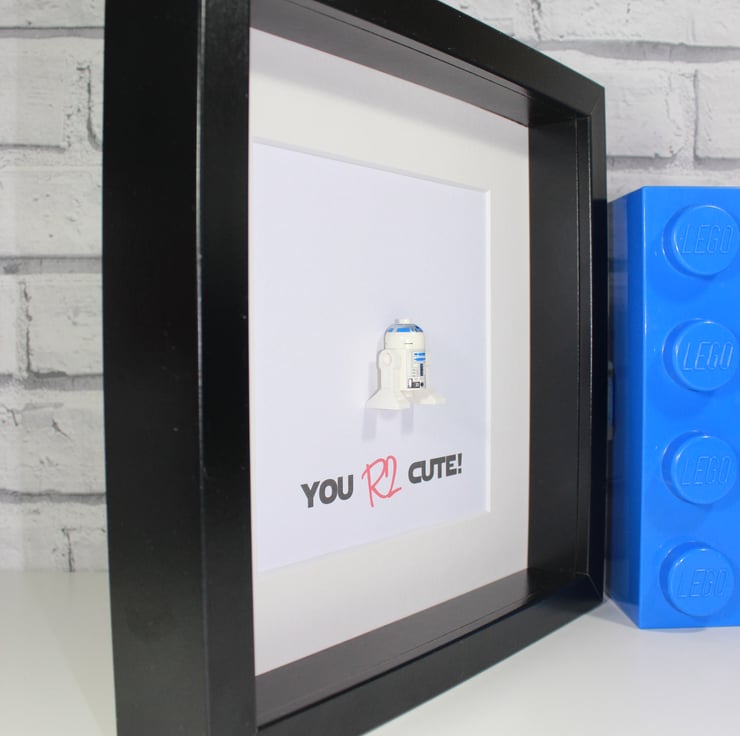 We have always sold a range of Star Wars frames and we felt it was about time that this little droid was let out on his own and given a chance to shine! We have mounted a little Lego figure of R2-D2 in to a deep box frame and printed "You R2 cute" underneath - this really would make a truly perfect gift for any fan of Star Wars, and makes a pleasant change from chocolates!