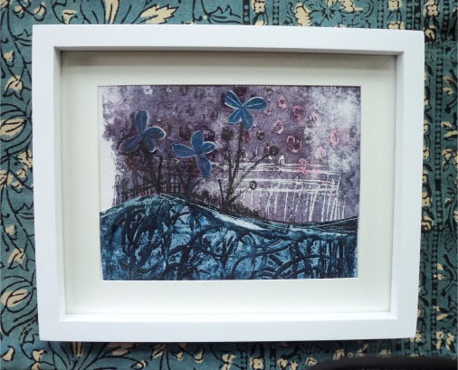 This is an original piece of work - A collagraph collage with some machine stitching and hand drawing.