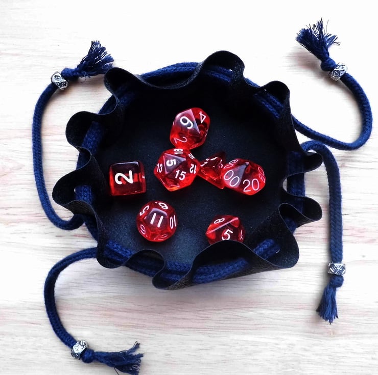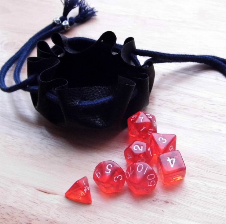 The pouch is a neat way to carry your dice around with you and comes with a set of gaming dice to start you off if you do not have a set already.