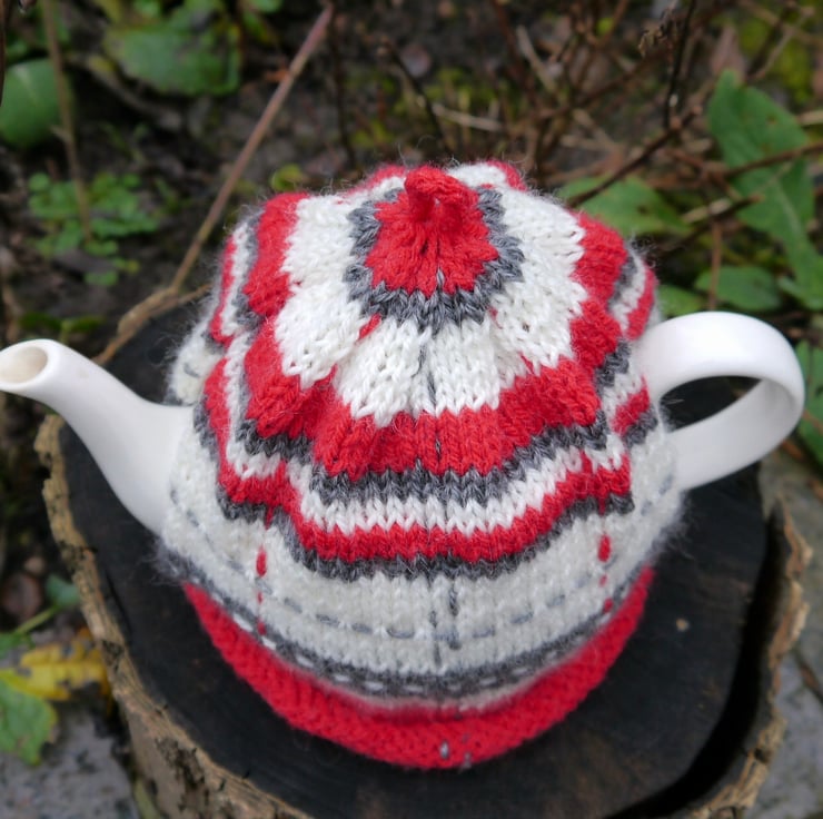 This red and grey tartan style tea cosy is handmade by me. It is made with lovely aran yarn which will keep the teapot nice and warm. It will fit a standard 4 - 6 cup teapot. It is fairly stretchy to suit many different styles of teapot. There is a crocheted loop attached to the top of the cosy if you wish to hang it up. There are also other colours available in my shop, see photos.