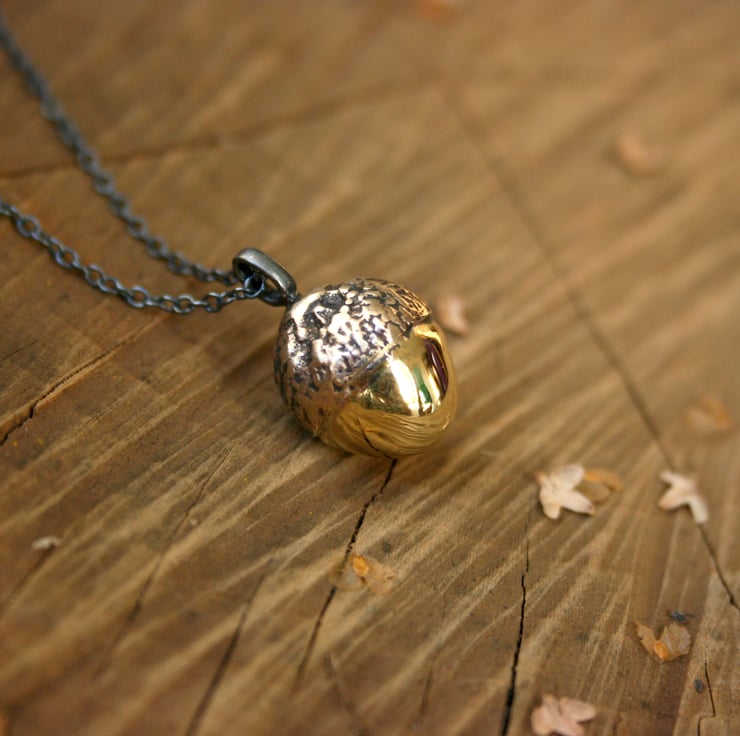 All of my jewellery is inspired by nature and it's treasures. This design celebrates the intricate and magical beauty of the acorn -A lucky charm, family memory, or something with a deep personal or symbolic meaning. "Mighty oaks from little acorns grow"
