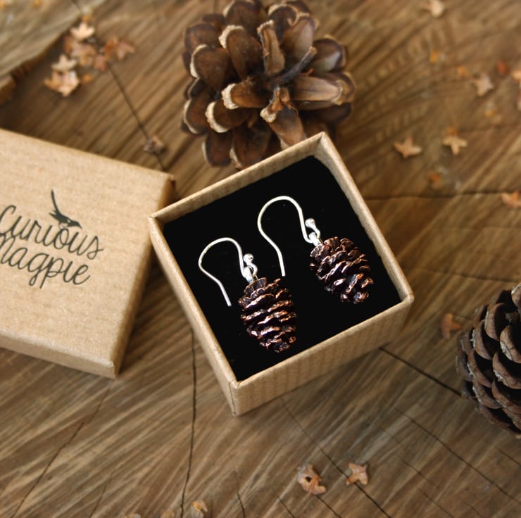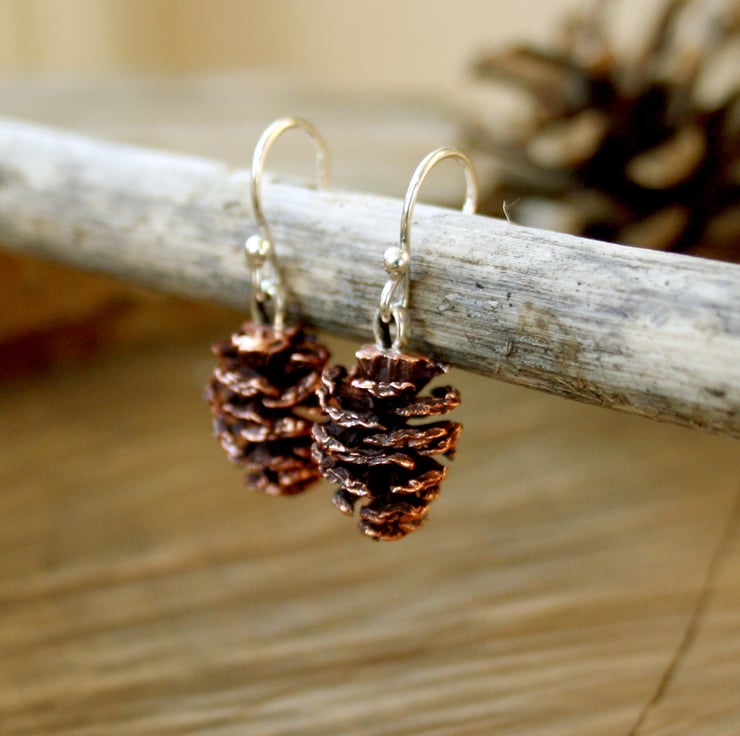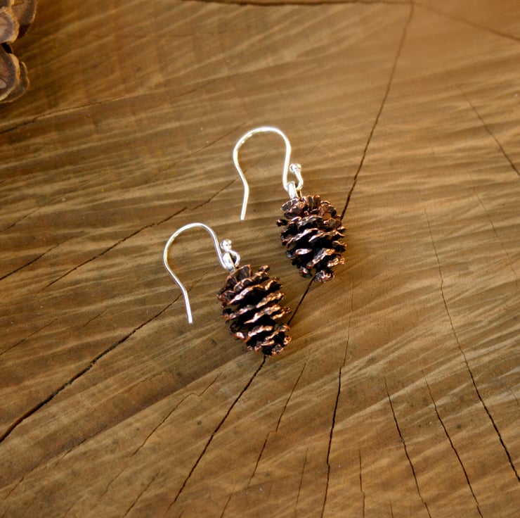 Handmade in pink bronze and sterling silver these unusual earrings are created from castings of actual miniature alder cones. Each piece is created in our Leicestershire studio from a different natural cone making each set of earrings completely unique.