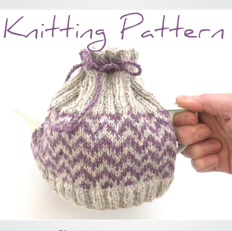Knitting pattern for an easy fair isle knit. Instructions for a fair isle knitted 2 cup tea pot cosy Height 6 inch, Width 7 inch.