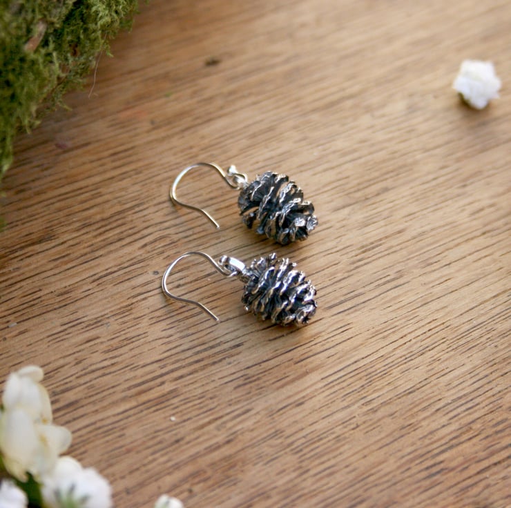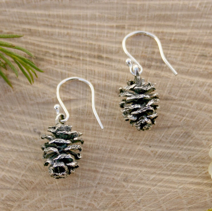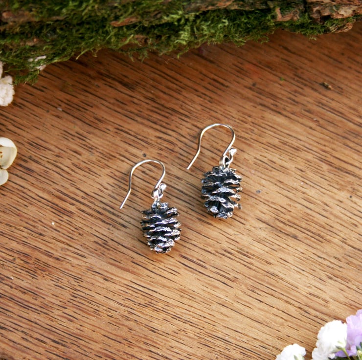 The pine cone charms are hung from elegant sterling silver hooks making them comfortable to wear.