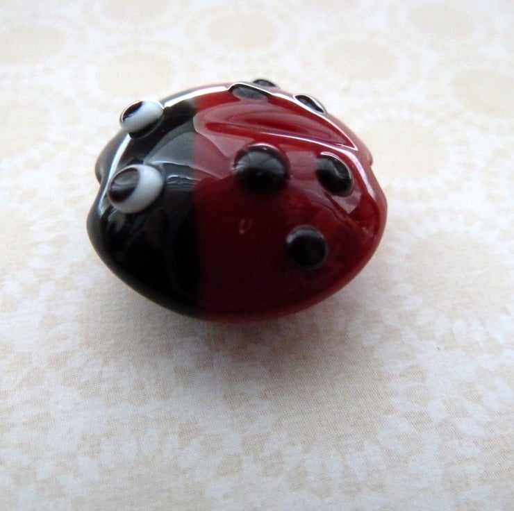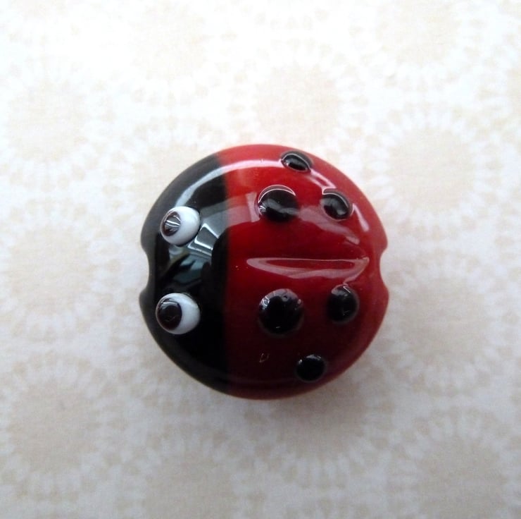 A lampwork glass bead I have made into a ladybird using red and black glass.