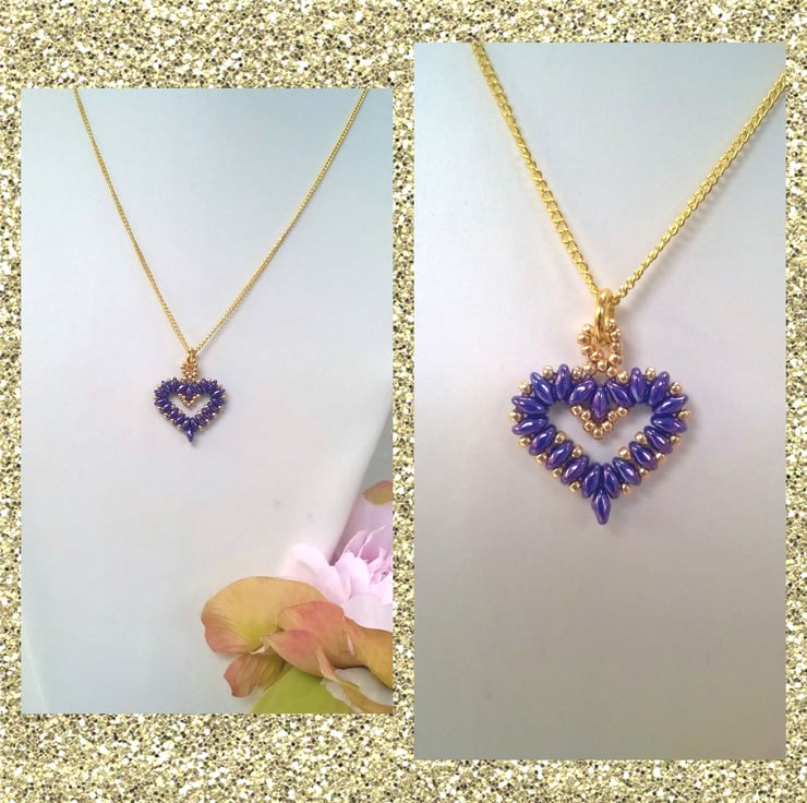 Deep purple shimmer twin hole beads, combined with miyuki galvanised gold seed beads. Hangs beautifully on this gold plated necklace approx 18inch (length can be altered as required).