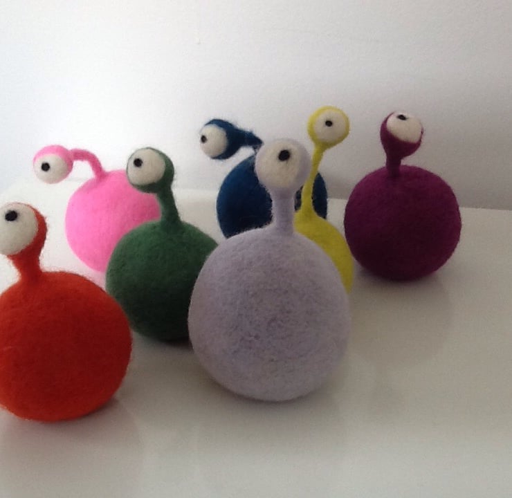 I have created a range of things over the years using the craft needle felting. A process where loose wool is worked with a barbed needle to condense and firm to a solid form. A fun process with endless possibilities.