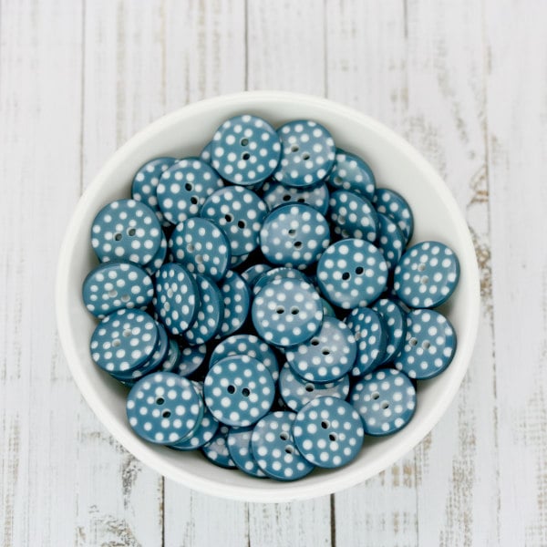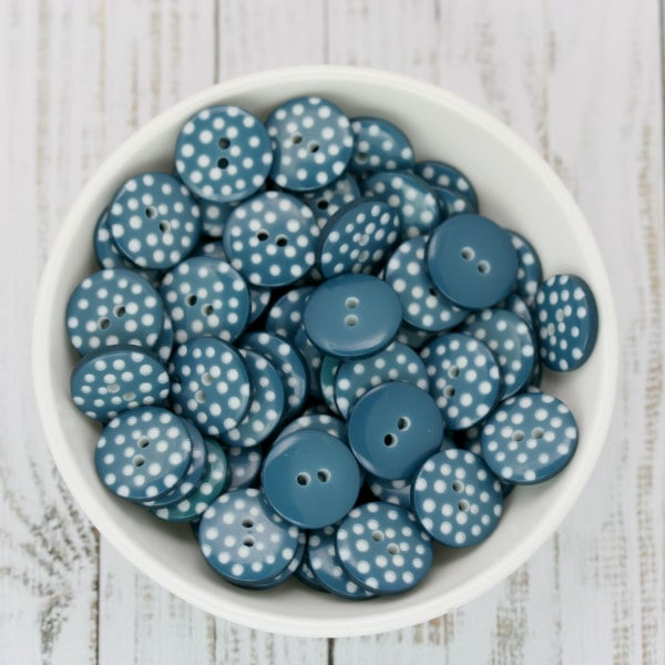 Teal Polka Dot Buttons, 2 hole round resin buttons