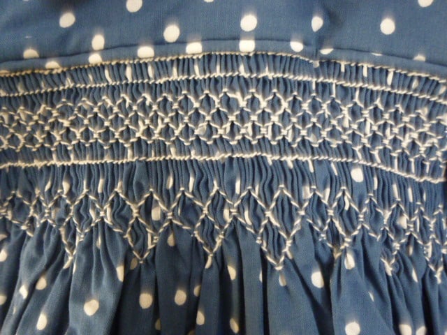 Sometimes the fabric I find dictates the style of the dress and this spotty fabric was crying out for a little smocking and smart white collars and cuffs.