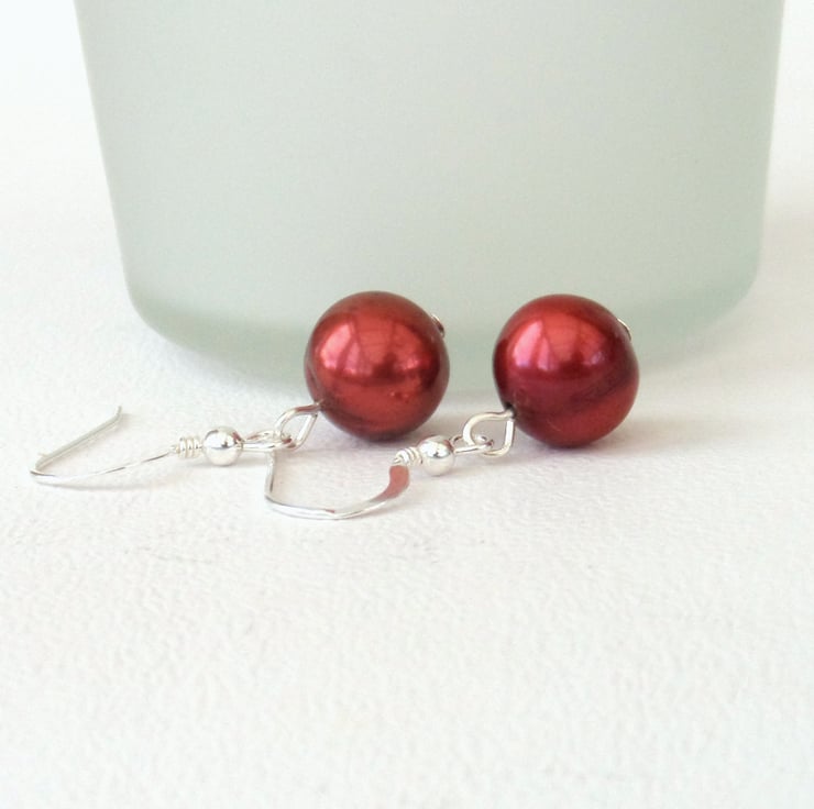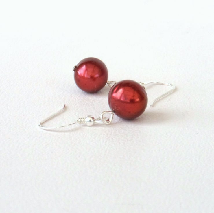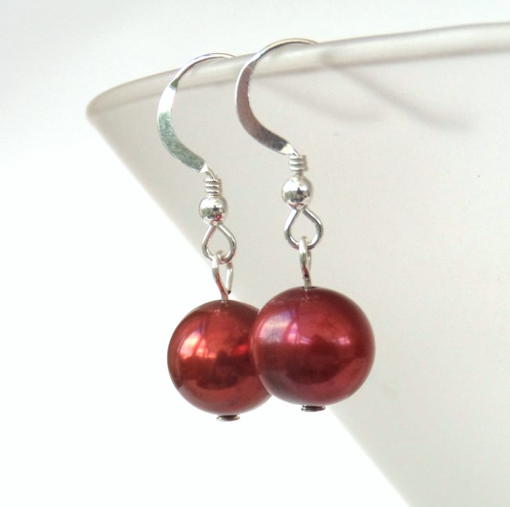 Stunning red pearls hang from 925 sterling silver wires in these rather lovely earrings.