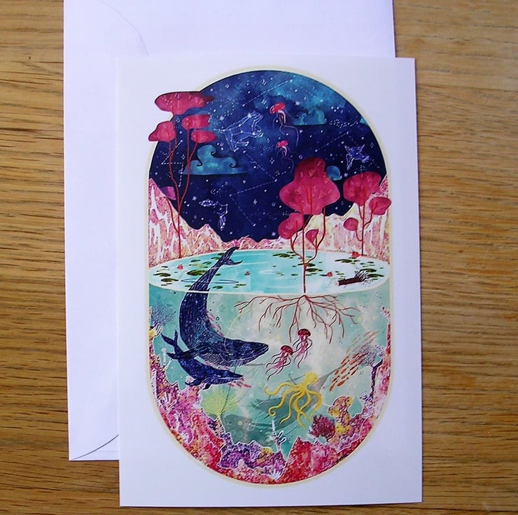 This beautiful greeting card measures 15cm x 10.5cm and is blank inside for your own message. Printed on 250gsm white card with C5 envelope and cellophane bagged.