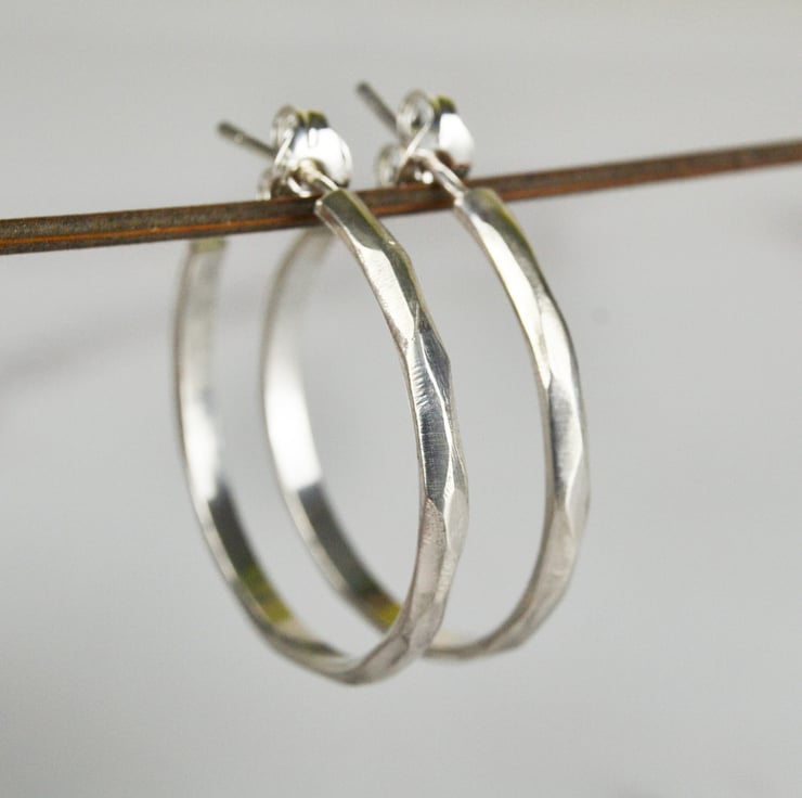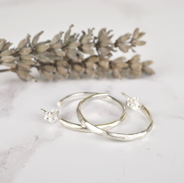 These hoop earrings made from sterling silver. I carve each facet individually, which lets the light bounce off them.