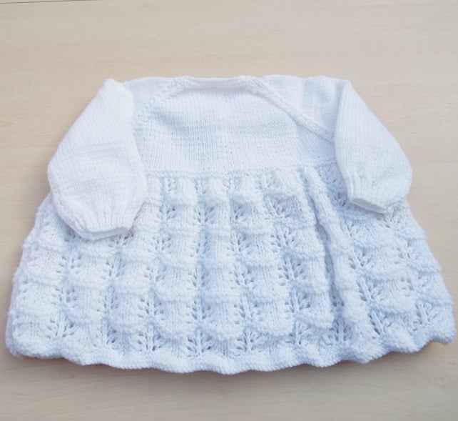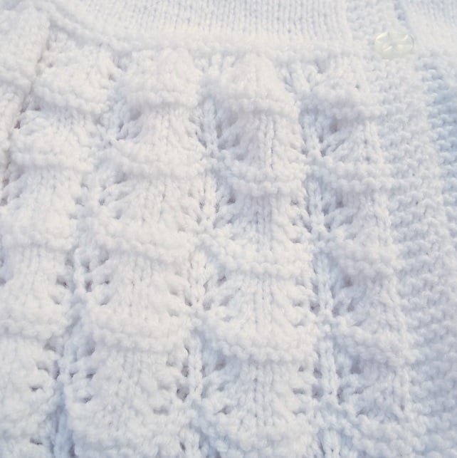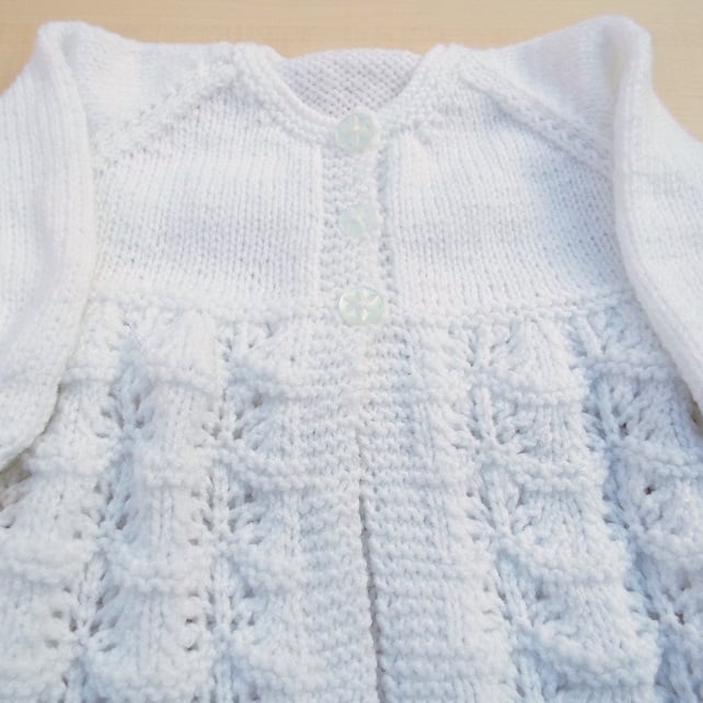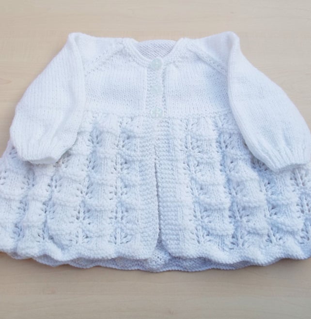 White cardigan hand knitted - girl's knitwear 24 inch chest