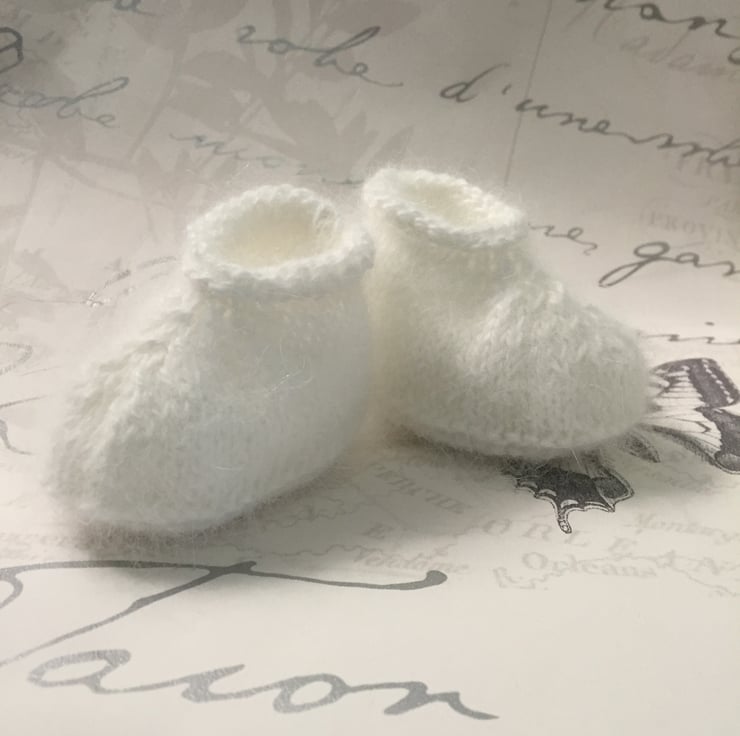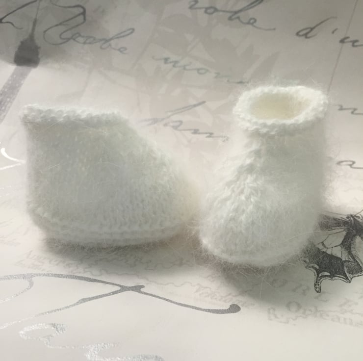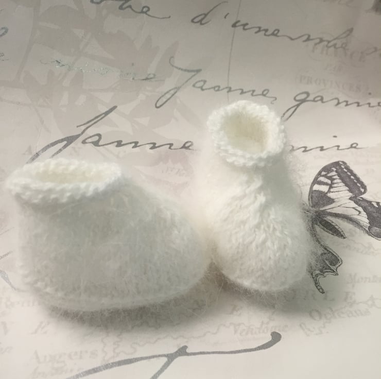 Lovely and soft Angora Baby Booties., a perfect baby shower gift.