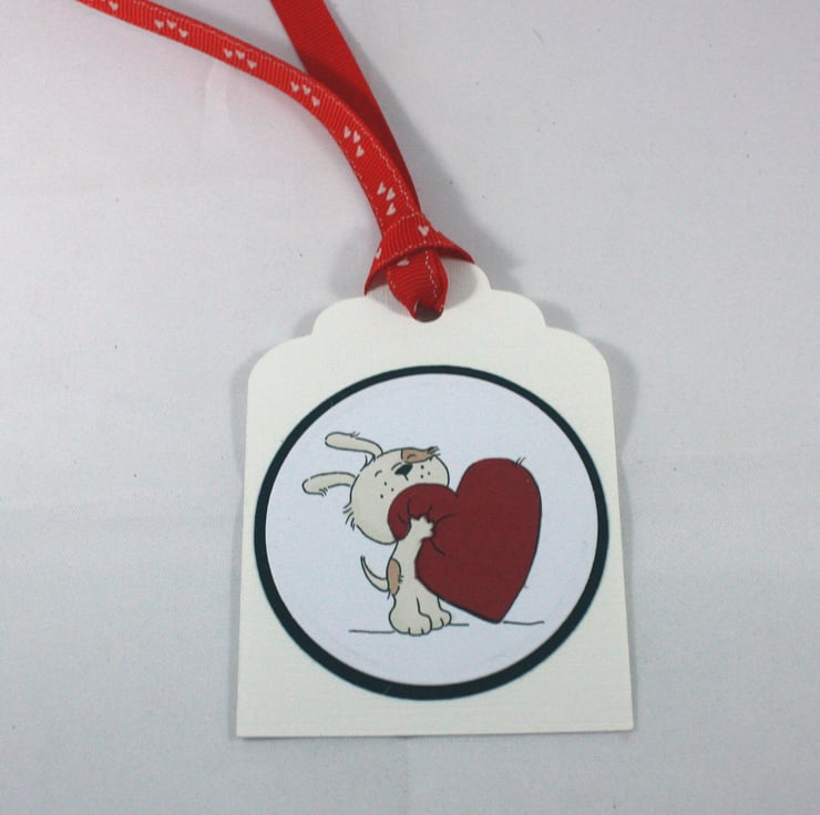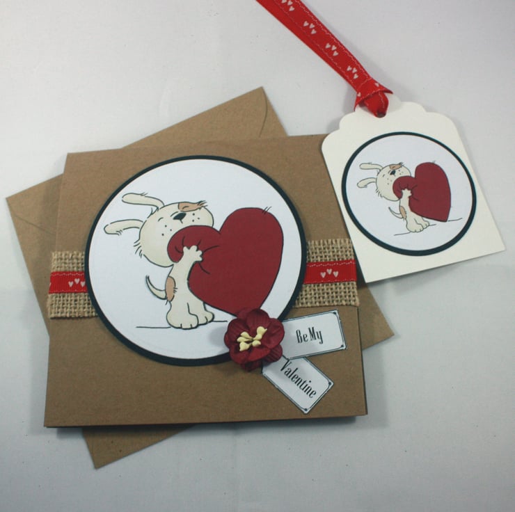 Square, kraft, Valentine's Day card and gift tag featuring a cute dog with a heart.