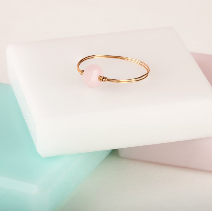 An extra thin gold ring with a pale pink stone at it’s centre - perfect for stacking!