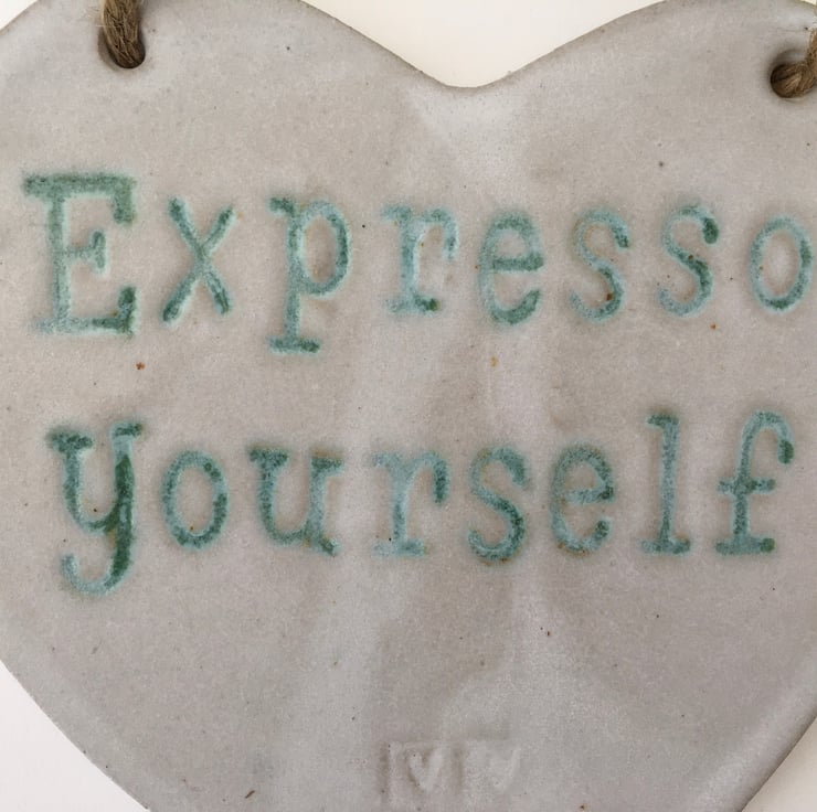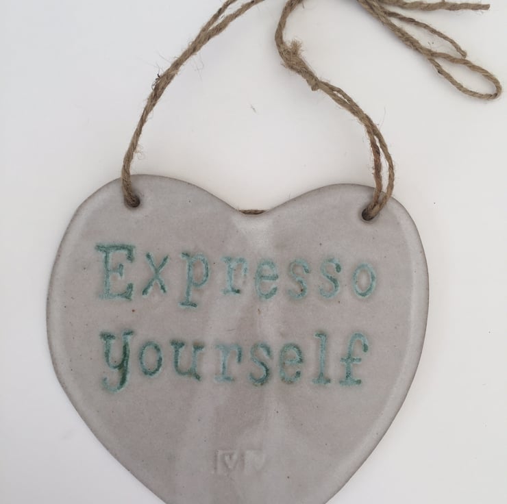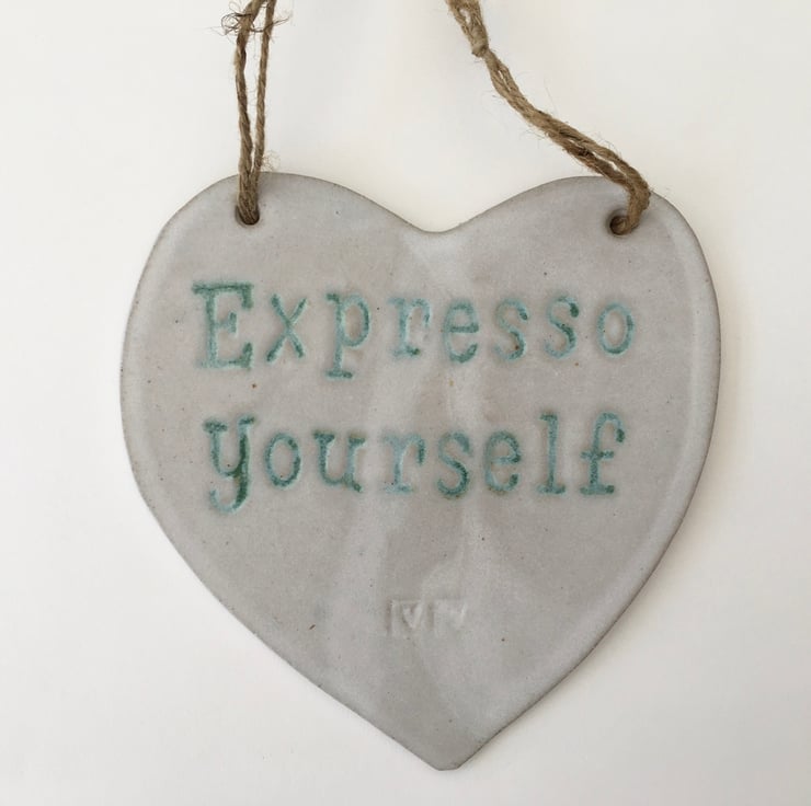 Novelty ceramic hanging board saying 'Expresso Yourself'.