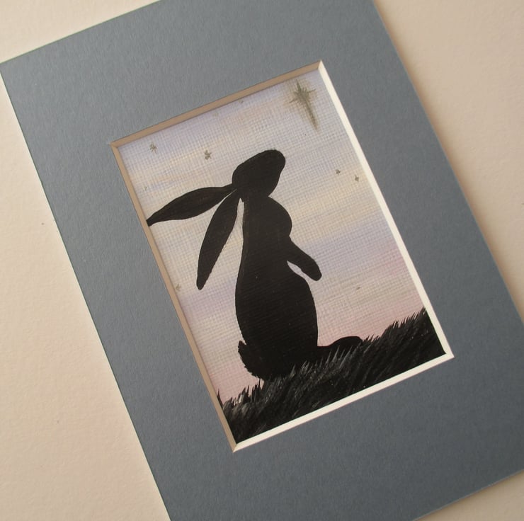 ACEO (Art Cards Editions and Originals) paintings measure just 2,3 x 3.5". My bunny ACEOs are mounted in specially cut mount boards to fit into a standard 6 x 4" frame. Each ACEO could be removed from the mount and stored in an ACEO collectors wallet if preferred.