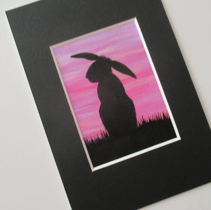 ACEO sized original bunny rabbit painting mounted ready to fit into a 6 x 4 inch frame.