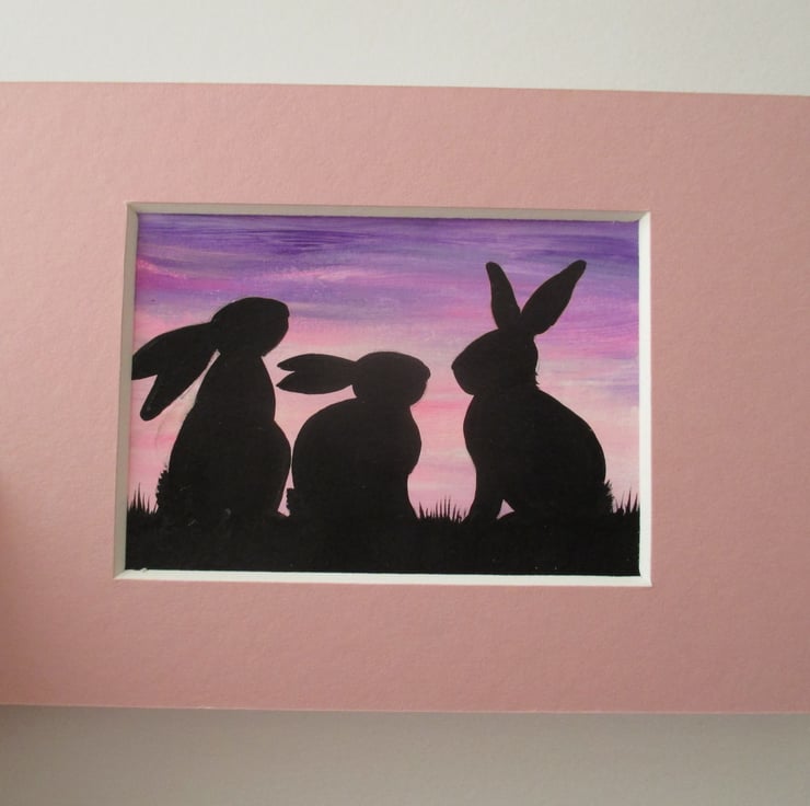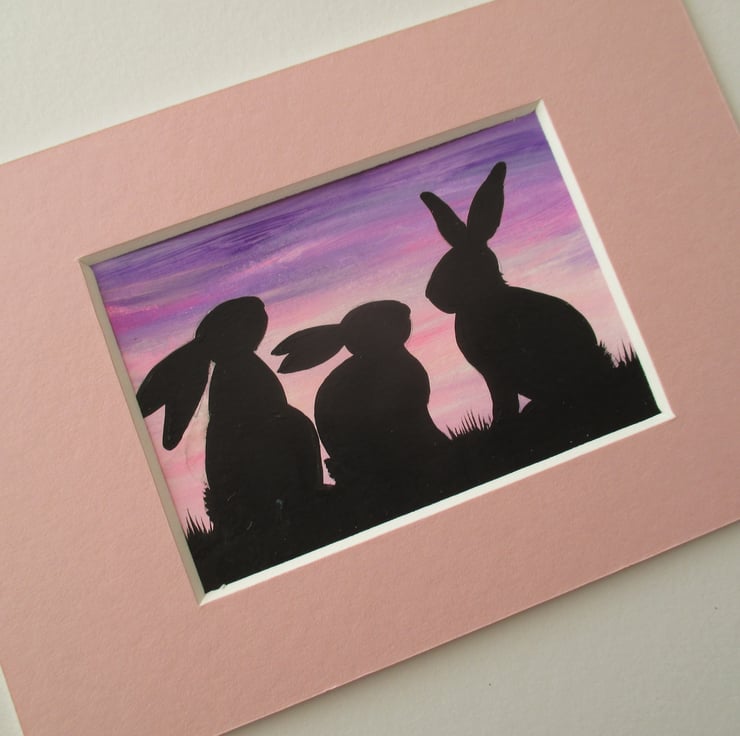 ACEO sized original bunny rabbit painting mounted ready to fit into a 6 x 4 inch frame.
