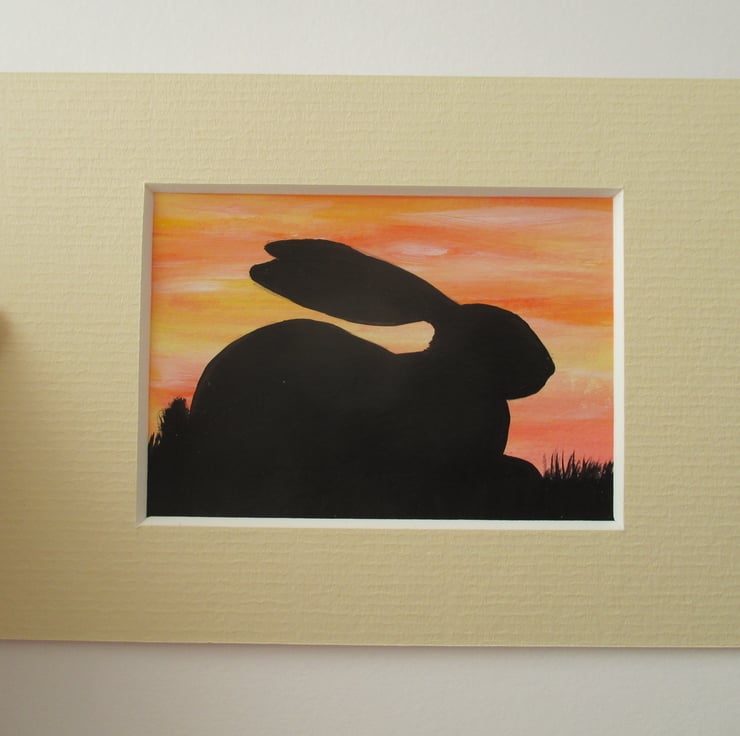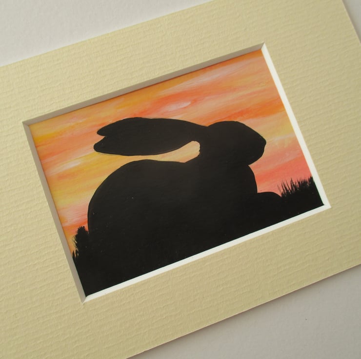 ACEO sized original bunny rabbit painting mounted ready to fit into a 6 x 4 inch frame.