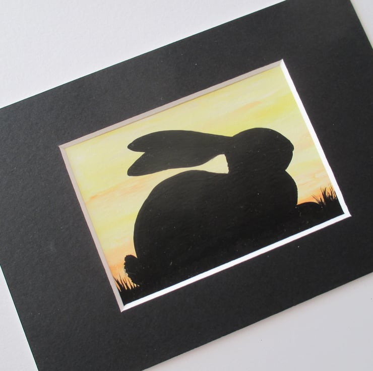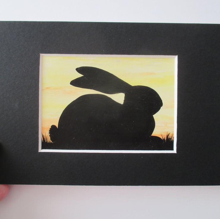 ACEO sized original bunny rabbit painting mounted ready to fit into a 6 x 4 inch frame.