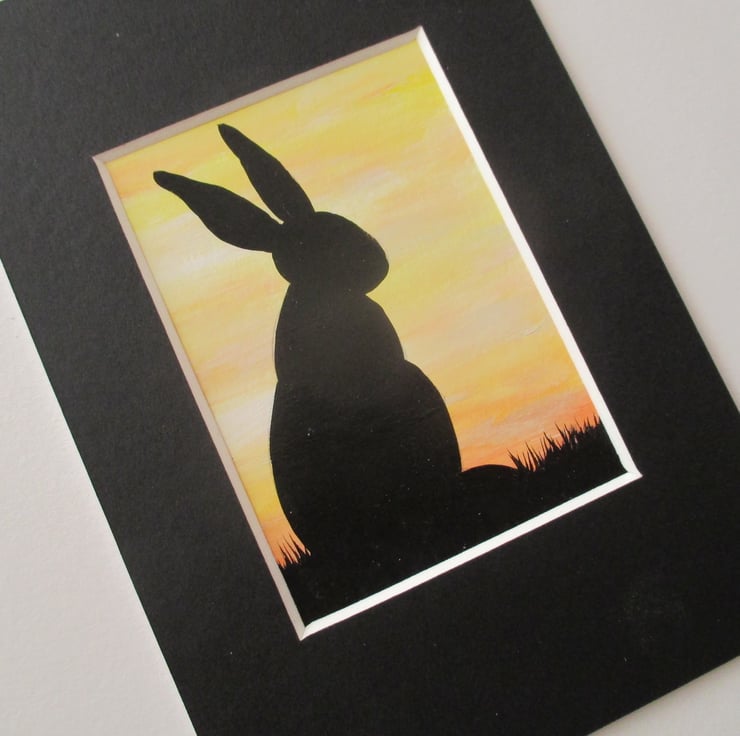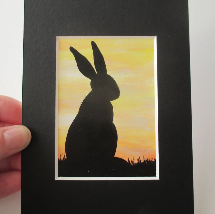 ACEO sized original bunny rabbit painting mounted ready to fit into a 6 x 4 inch frame.