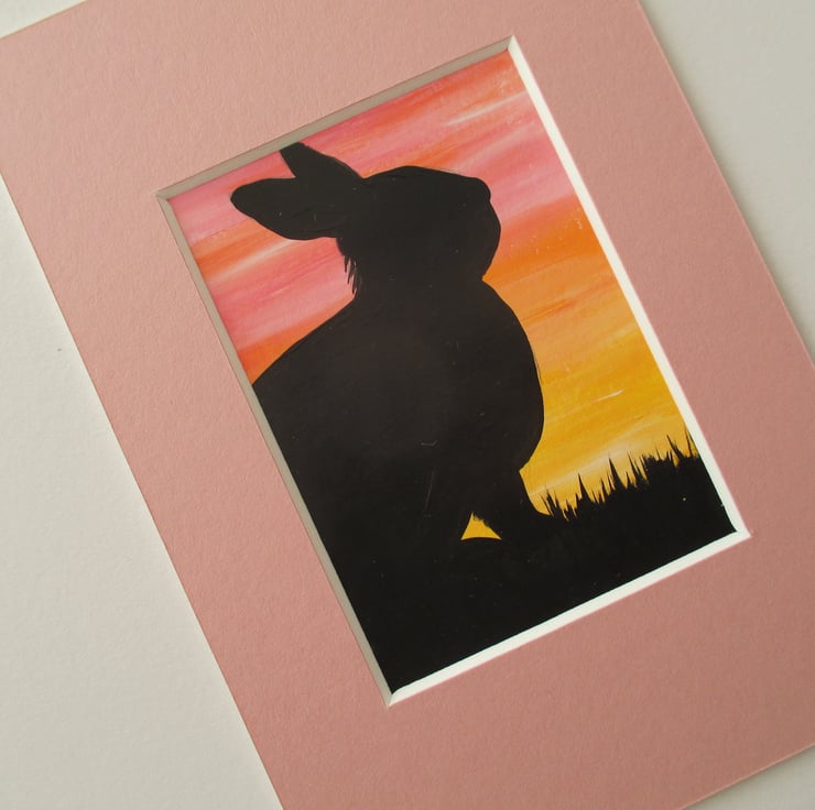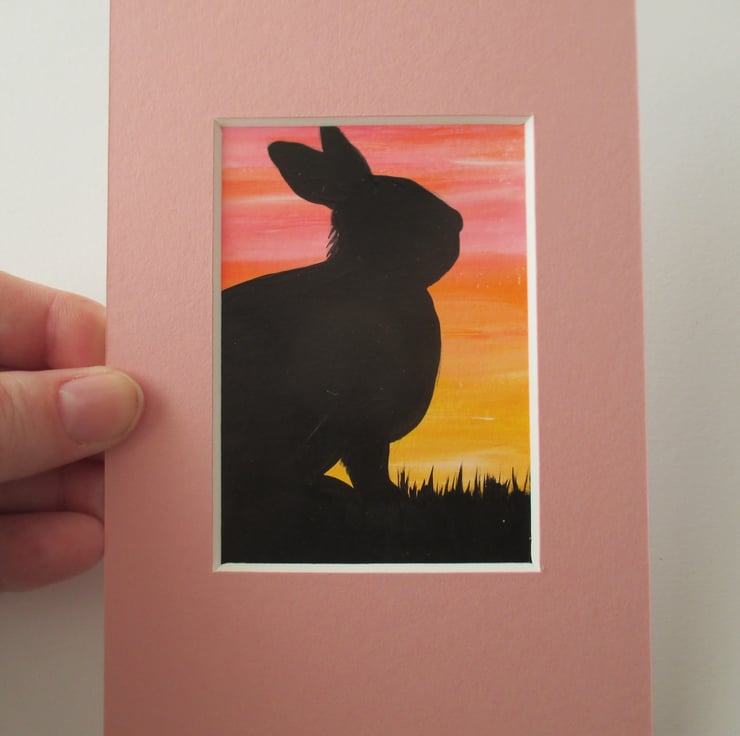 ACEO sized original bunny rabbit painting mounted ready to fit into a 6 x 4 inch frame.