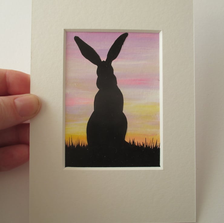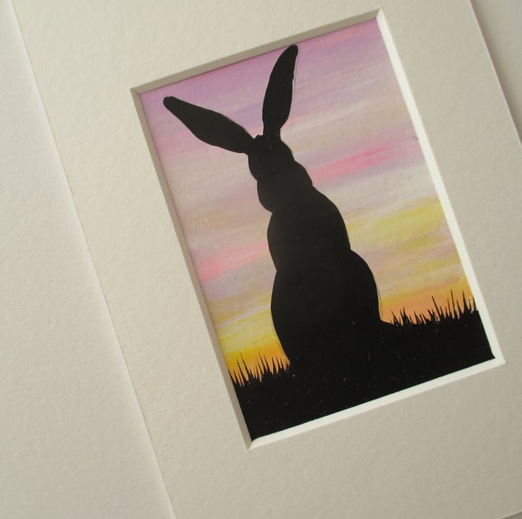 ACEO sized original bunny rabbit painting mounted ready to fit into a 6 x 4 inch frame.