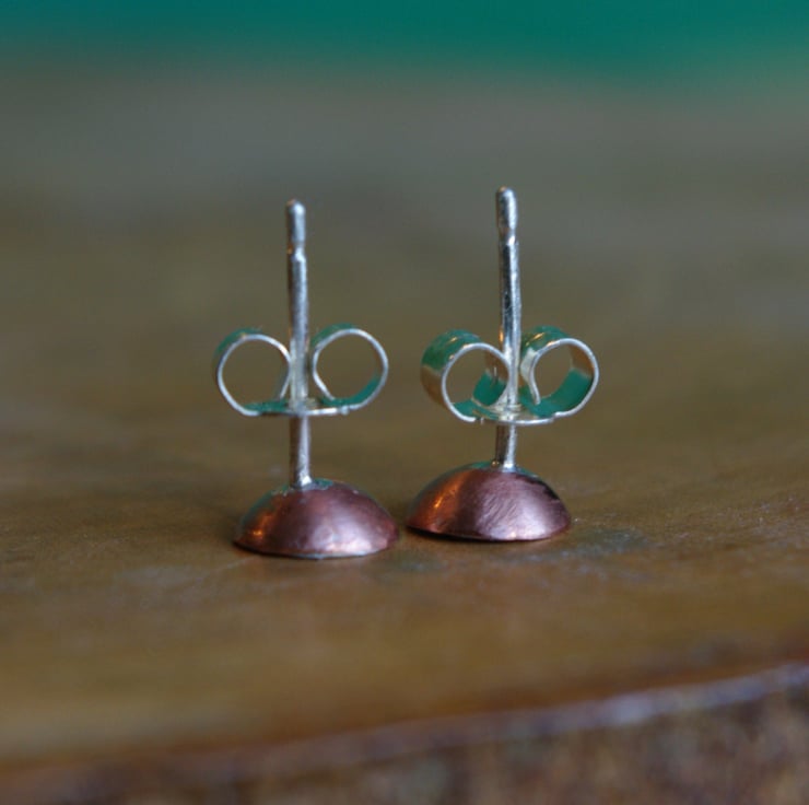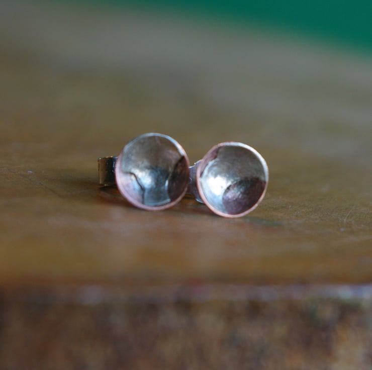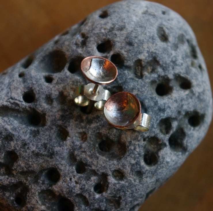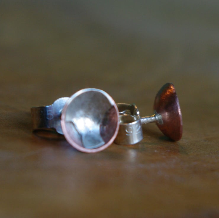 I have made a copper cup 6mm in diameter ,3mm in depth and have soldered a silver shape inside ;different in each earring.