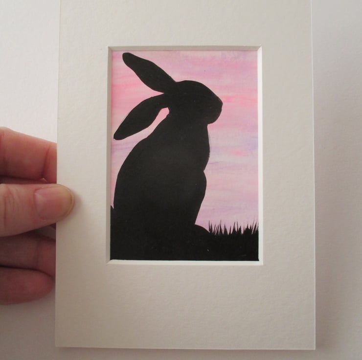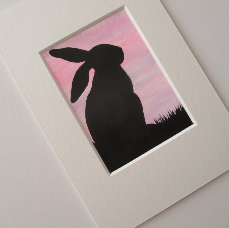 ACEO sized original bunny rabbit painting mounted ready to fit into a 6 x 4 inch frame.