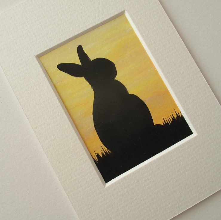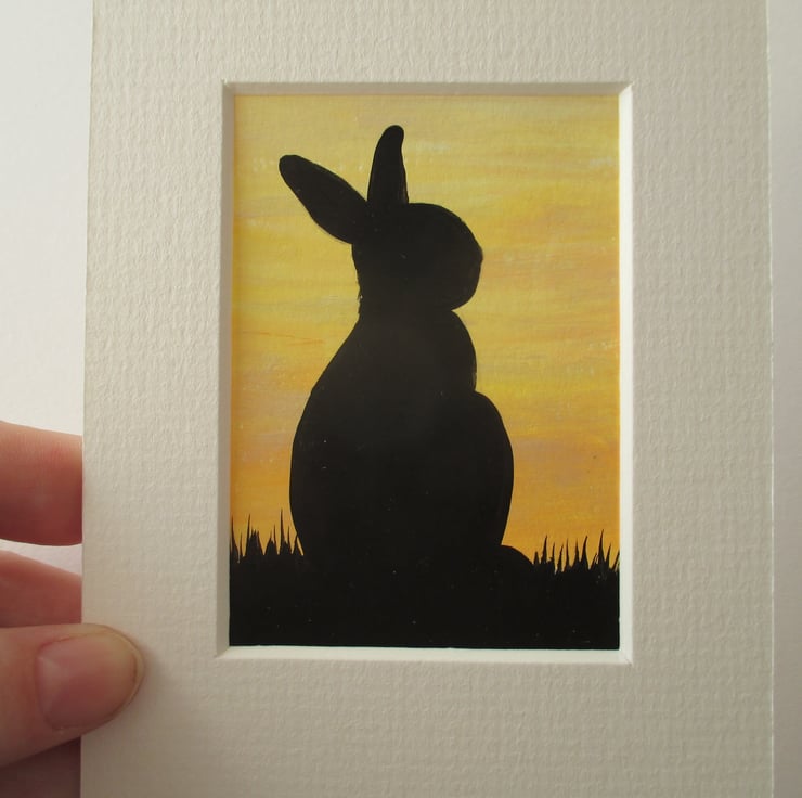 ACEO sized original bunny rabbit painting mounted ready to fit into a 6 x 4 inch frame.