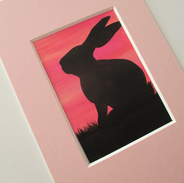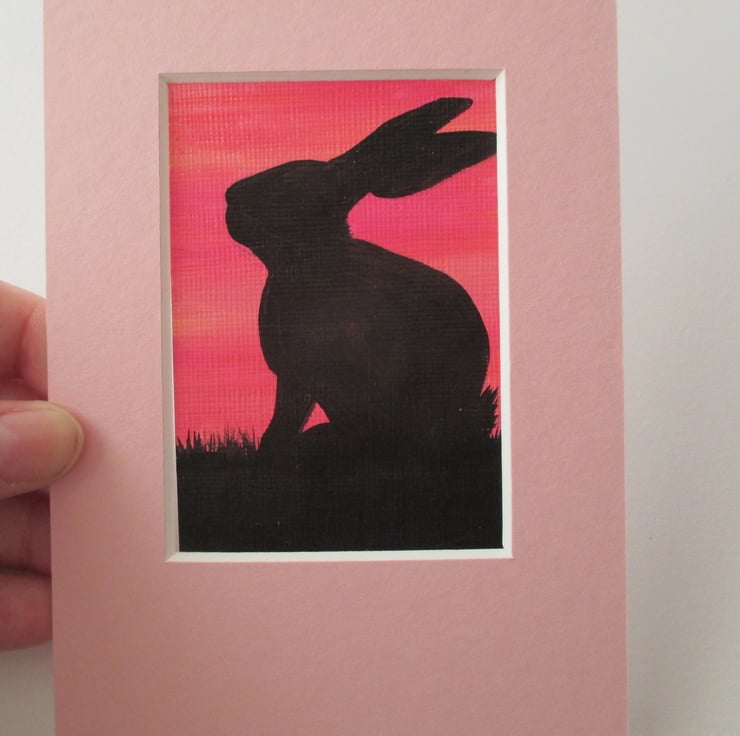 ACEO sized original bunny rabbit painting mounted ready to fit into a 6 x 4 inch frame.