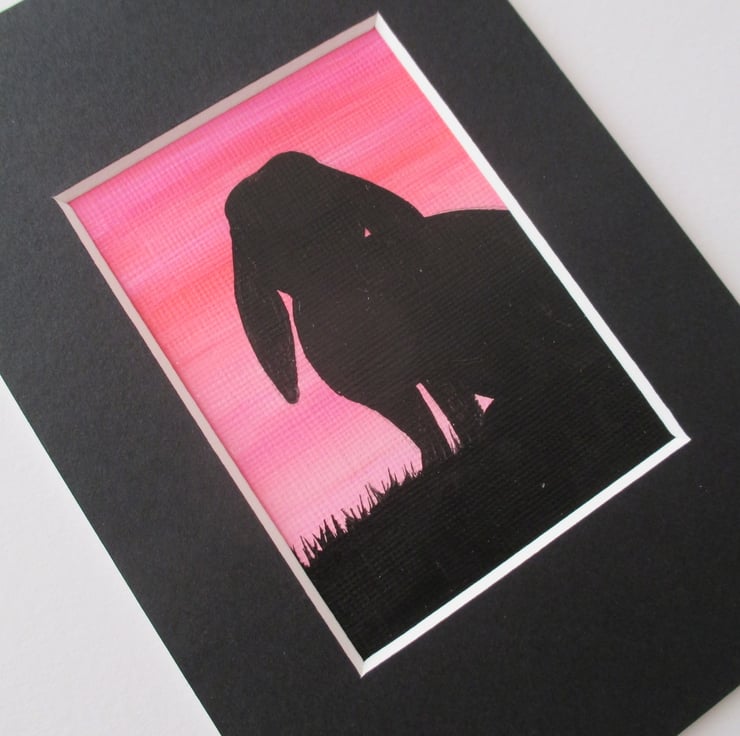 ACEO sized original bunny rabbit painting mounted ready to fit into a 6 x 4 inch frame.