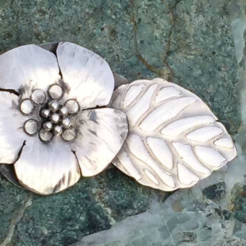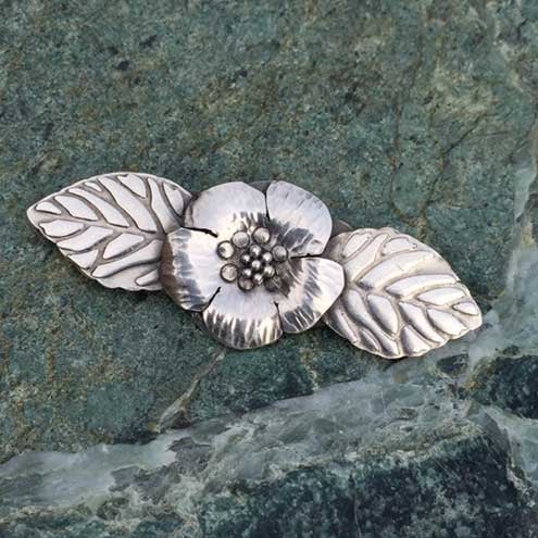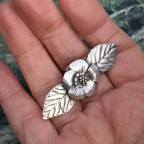 I enjoy making this brooch design and each one develops its own unique character as the silver flowers and leaves grow under my torch and hammer.