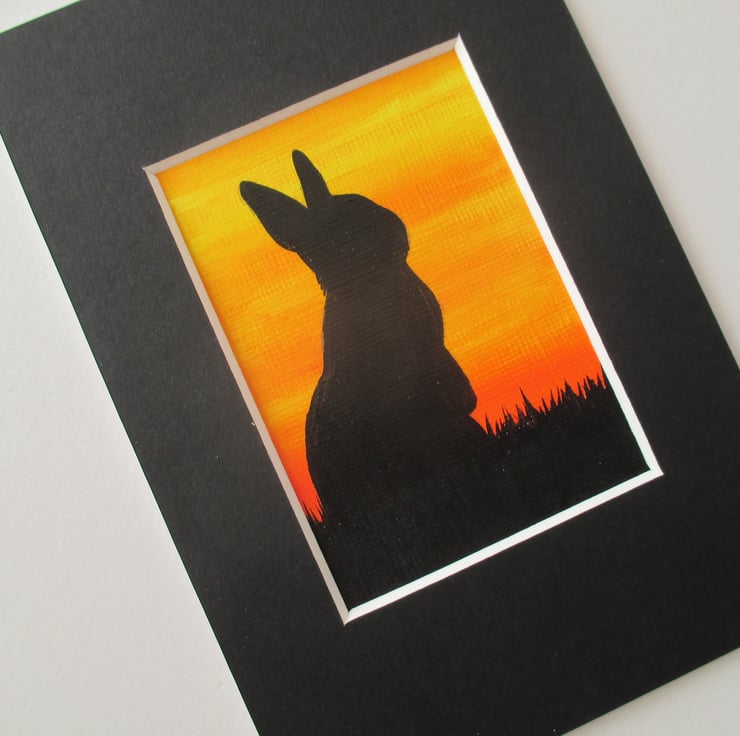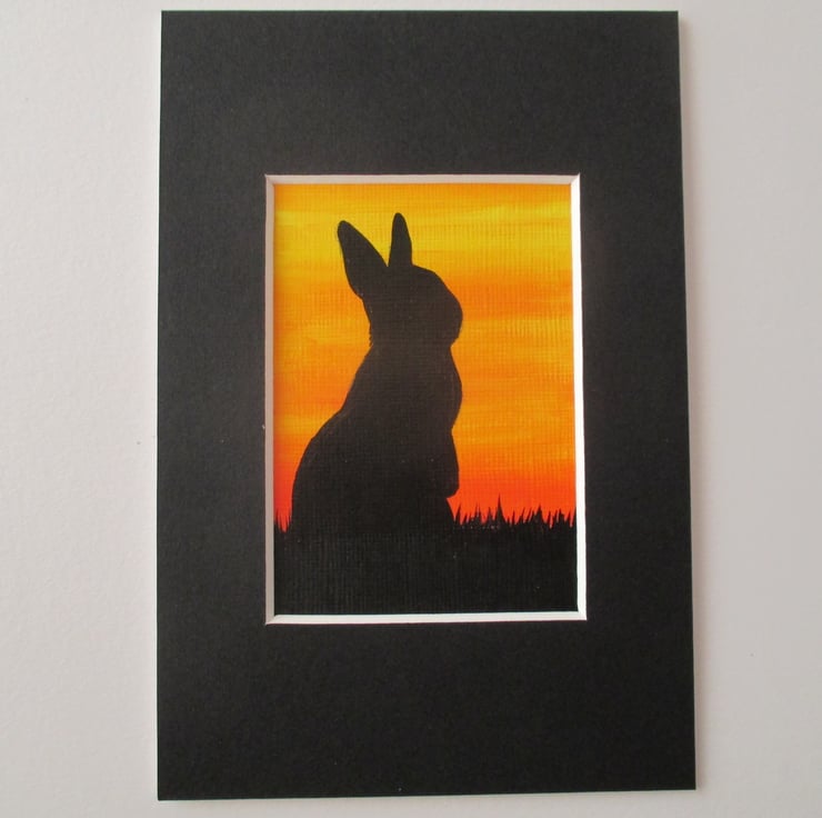 ACEO sized original bunny rabbit painting mounted ready to fit into a 6 x 4 inch frame.