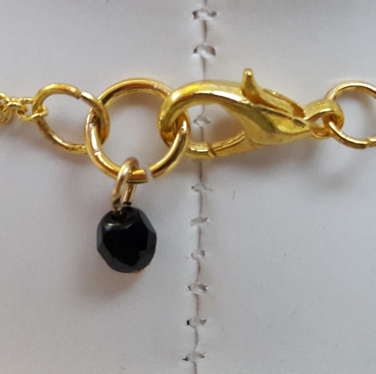 The dark crystals and sparkling gold beads were inspired by a beautiful clear nights sky with an array of evening stars.