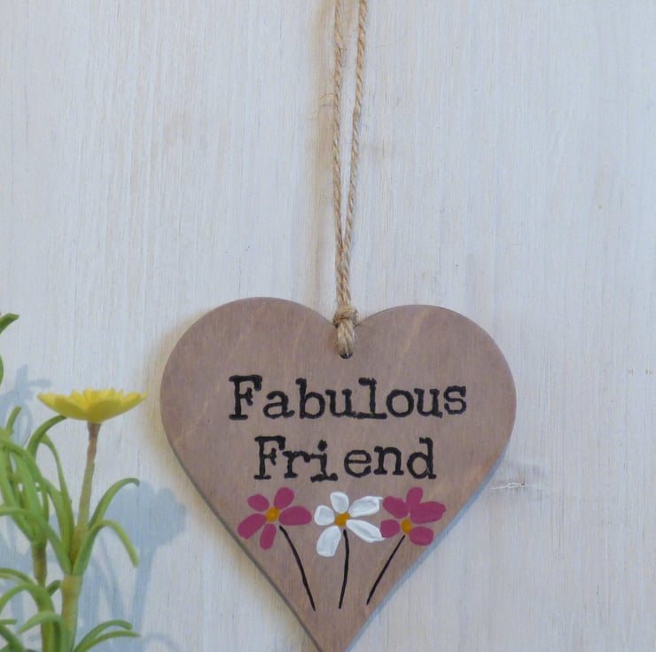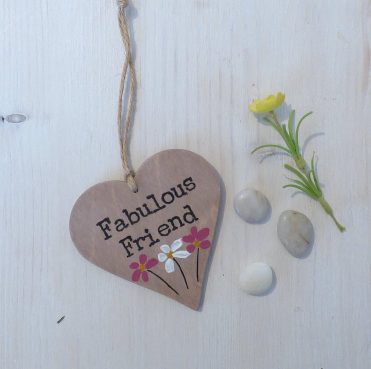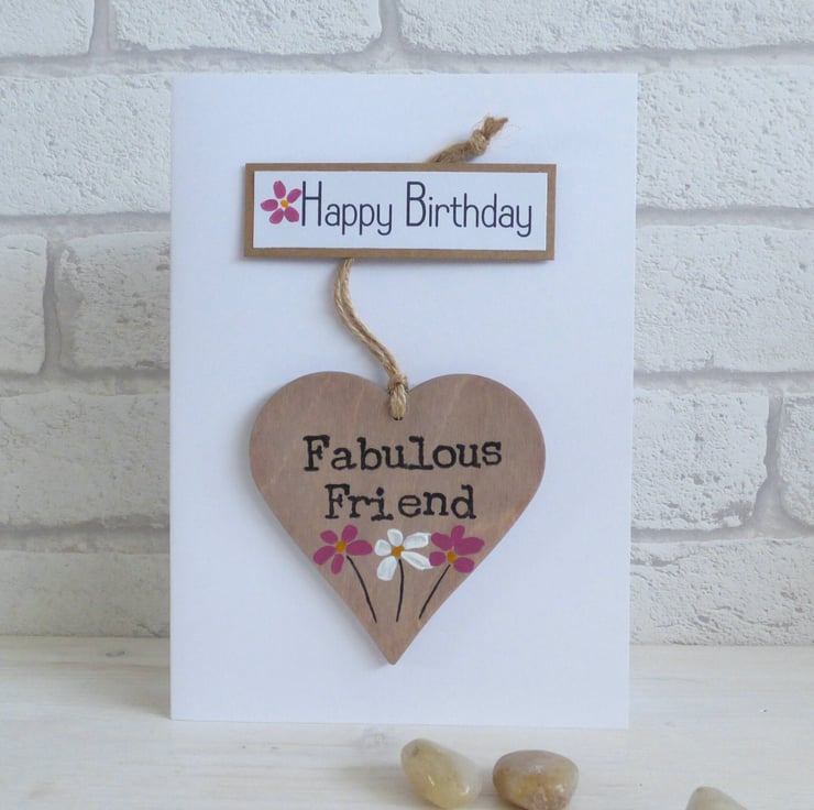 A pretty handmade card and gift in one! Wooden heart has been hand painted using acrylic paints and sealed with varnish for protection.