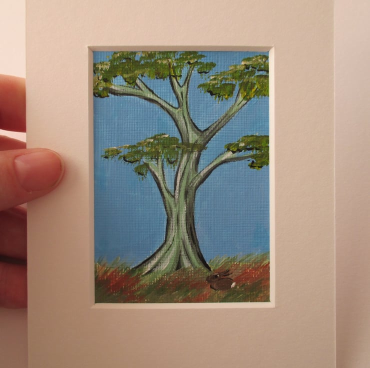 These are part of my 'Tree and bunny' collection, and are painted in acrylics.