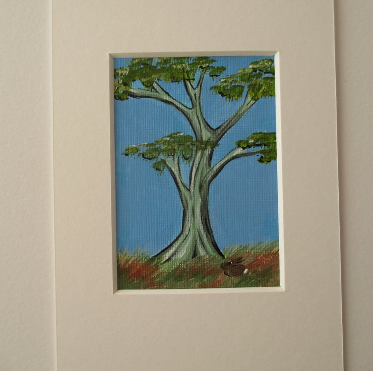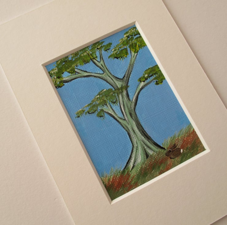 ACEO sized original bunny rabbit painting mounted ready to fit into a 6 x 4 inch frame.