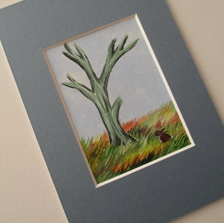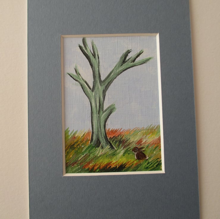 ACEO sized original bunny rabbit painting mounted ready to fit into a 6 x 4 inch frame.