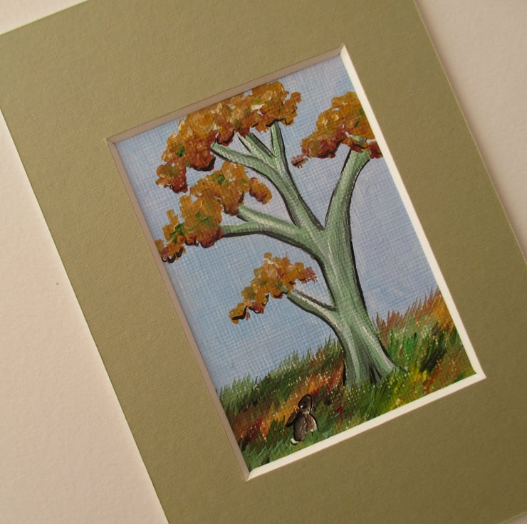 ACEO (Art Cards Editions and Originals) paintings measure just 2,3 x 3.5". My bunny ACEOs are mounted in specially cut mount boards to fit into a standard 6 x 4" frame. Each ACEO could be removed from the mount and stored in an ACEO collectors wallet if preferred.