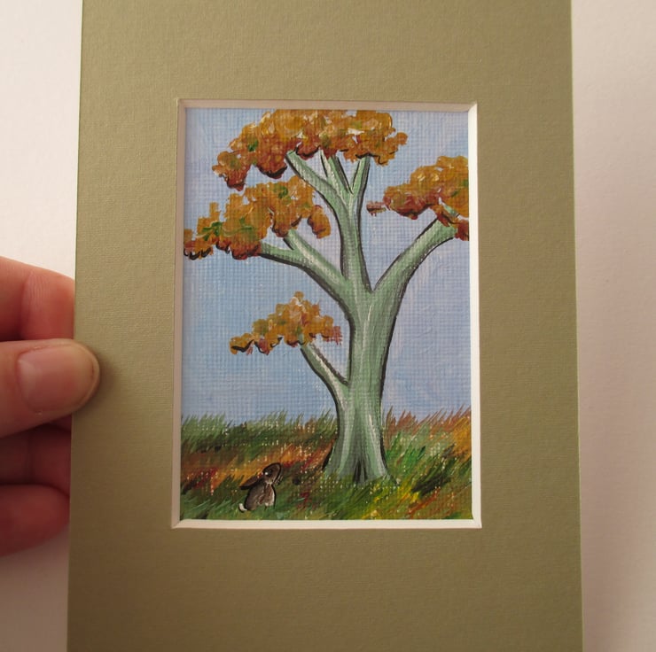 ACEO sized original bunny rabbit painting mounted ready to fit into a 6 x 4 inch frame.